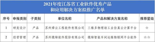近日,江苏省工信厅公示了2021年度江苏省工业软件优秀产品和应用解决方案拟推广名单,苏州舜云工程软件有限公司和苏州微缔软件股份有限公司两家苏州相城高新区企业成功入选。