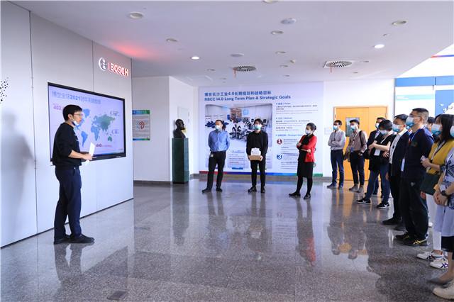 在工业4.0展示室,相关负责人向同学们介绍了工业4.0的基本情况和发展进程,展示了工业4.0发展的相关应用。博世作为工业4.0的践行者,能自主为企业提供从生产线的概念设计、过程优化、软硬件构建到运行的“个性化定制”,目前博世(长沙)是湖南省首条ABS9工业4.0示范生产线,拥有50多个工业4.0解决方案。