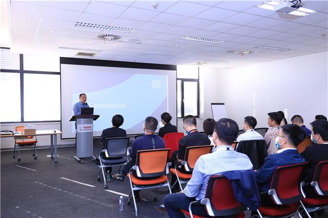 在博世的研发大楼会议室里,湖南大学EMBA的师生们与博世(长沙)的管理人员进行了座谈交流。首先湖南大学专业学位研究生教育管理中心副主任曾薇对于这次博世参访表示了由衷的感谢,她说每一次参访都有不同的感受,每一次参访都看到了博世更加强大的智能化技术发展。随后,博世(长沙)相关人员对精益生产的系统及价值流组织进行了详细介绍,博世生产系统始终坚持“ALWAYS(始终).DO(做).BETTER(更好)”,希望通过精益求精的生产系统将企业发展得越来越好。