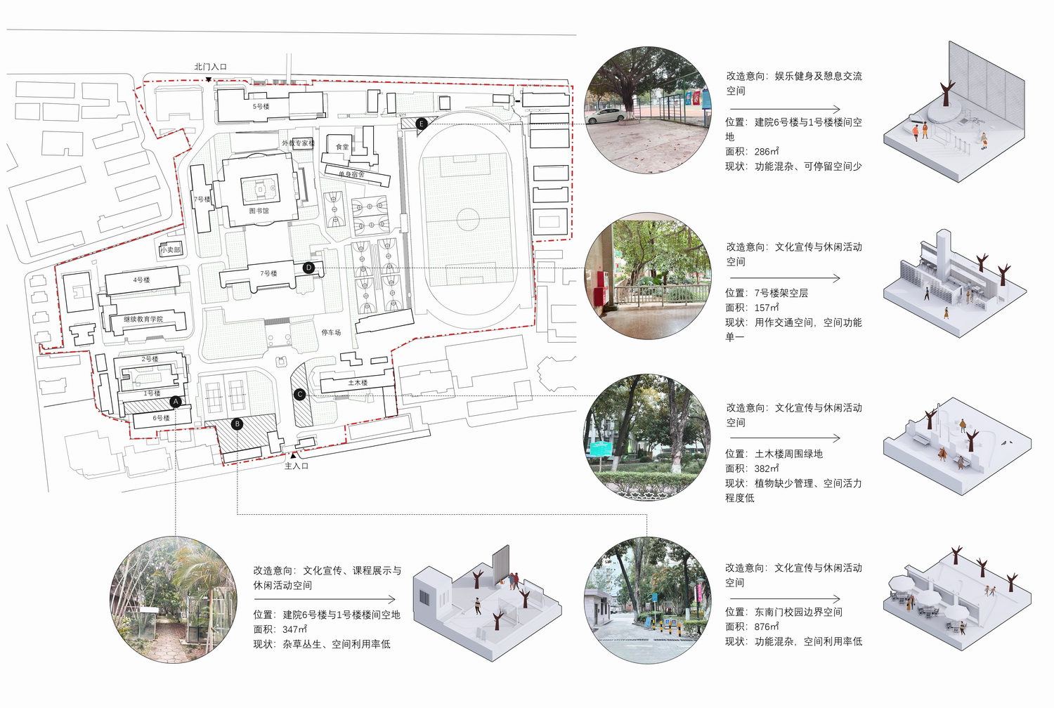 △“公共学习空间与融合创新基地”整体方案构成 ©广东工业大学校园更新小队