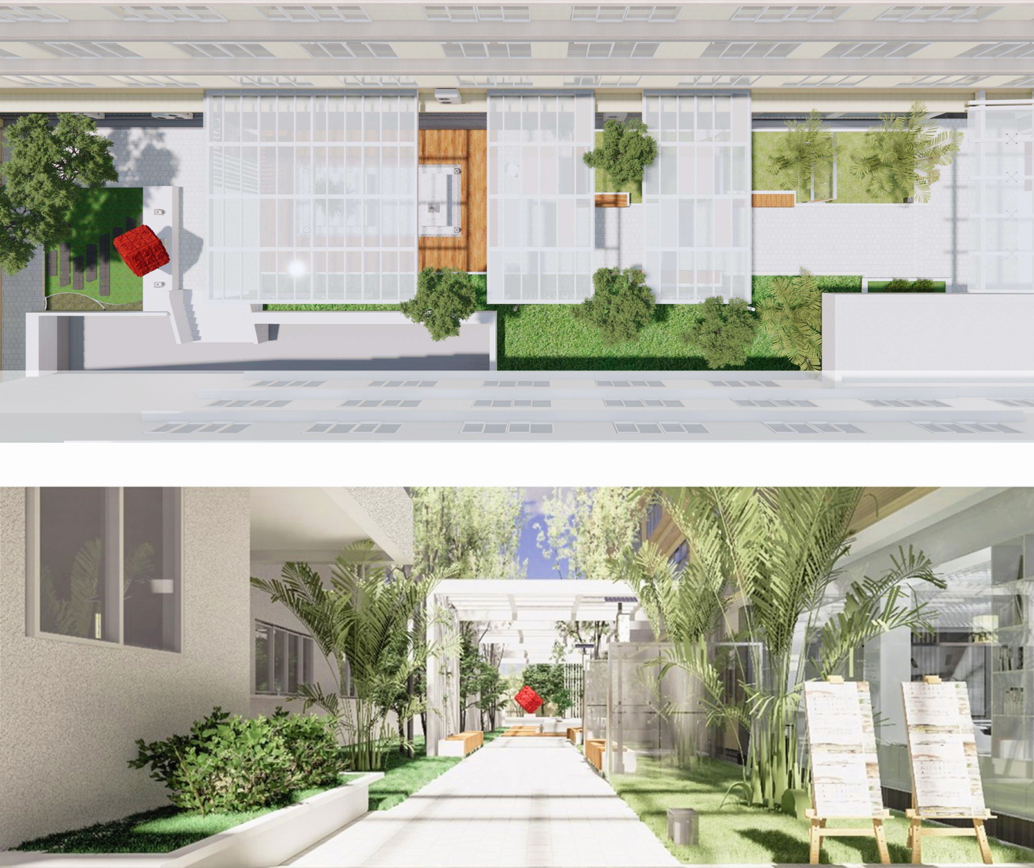 △“绿色人文狭院”效果图 ©广东工业大学校园更新小队